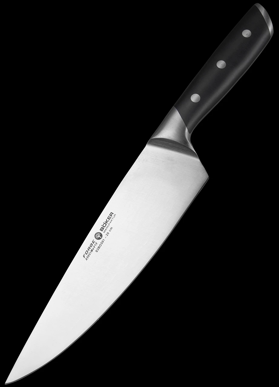 The Boker Forge Kitchen Knife line combines innovative and dynamic designs with a classic material selection, at a premium quality level. The attractive, eye-catching design lines distinguish this series from the masses of average kitchen knives, without being too flashy.