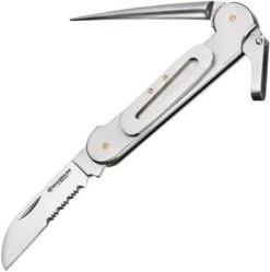 16.75″ overall. 11.88″ black finish 440A stainless blade. Black and orange rubberized synthetic handle. Full, extended tang. Lanyard hole. Finger grooved handle. Black nylon belt sheath. Boxed.