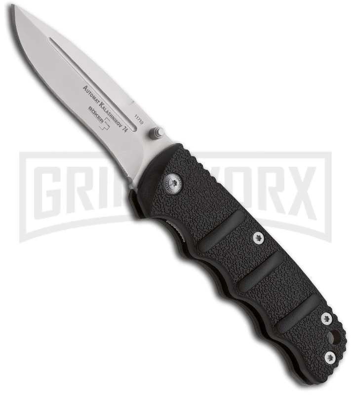 A more compact version of the popular Kalashnikov 74 Series. This Boker Plus Mini Kalashnikov Folding Knife features the same sturdy construction as the Automatic Kalashnikovs we have come to love. It features a drop point bead blast finish blade made of AUS-8 stainless steel and rugged aluminum handles with structured finger grooves for a secure grip. Includes pocket clip. With plain edge blade and liner lock mechanism.