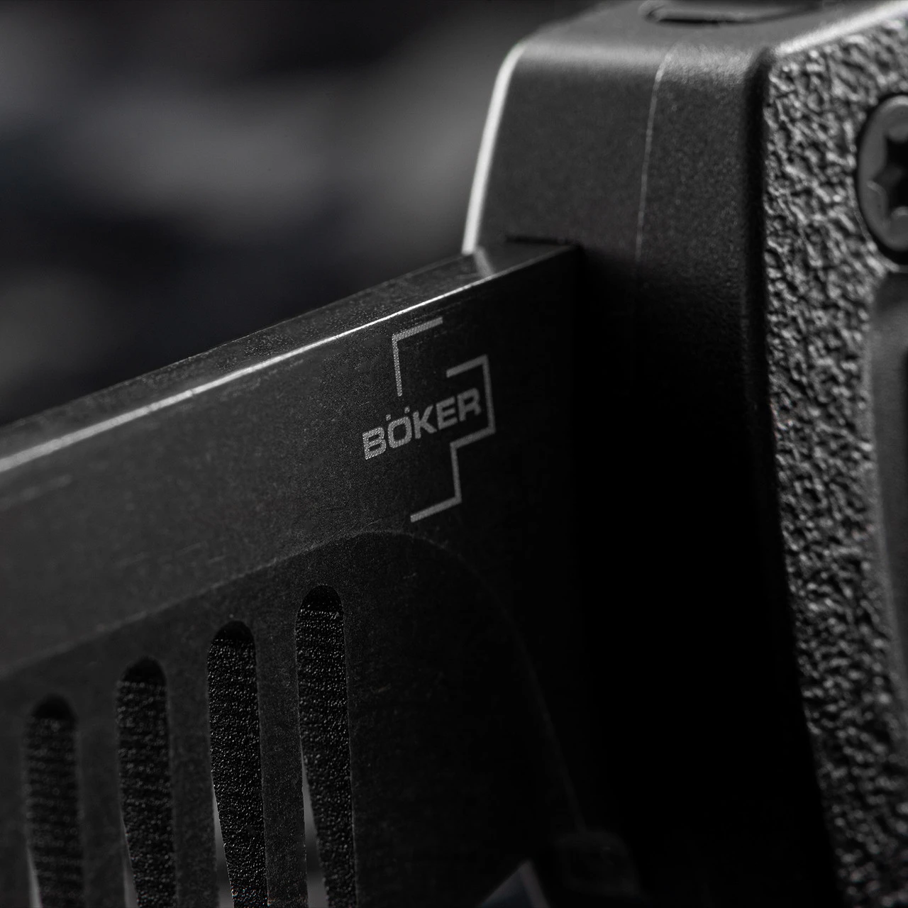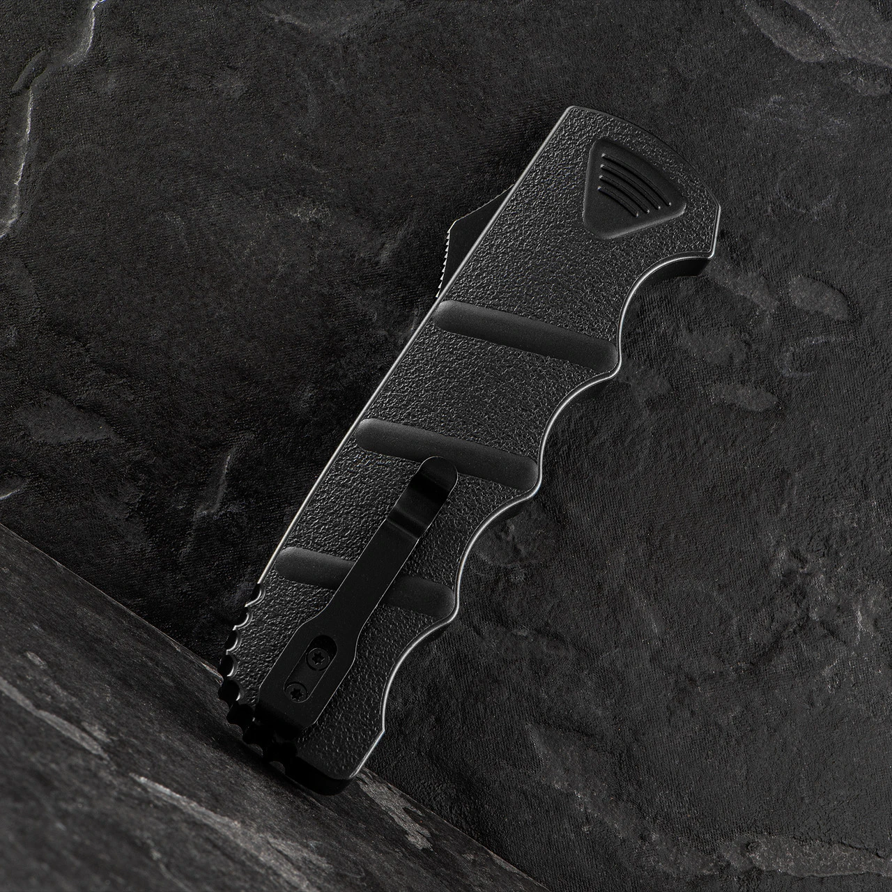 Modelled on the handle of the famous Kalashnikov rifle bayonet it features a rock solid operation using the Boker Kalashnikov mechanism manufactured by Cobratech for a lightning groom. The blackwashed, D2 carbon steel comb flies out and is ready to take your unkemptness to task. And at the slide of a button it flies back in.