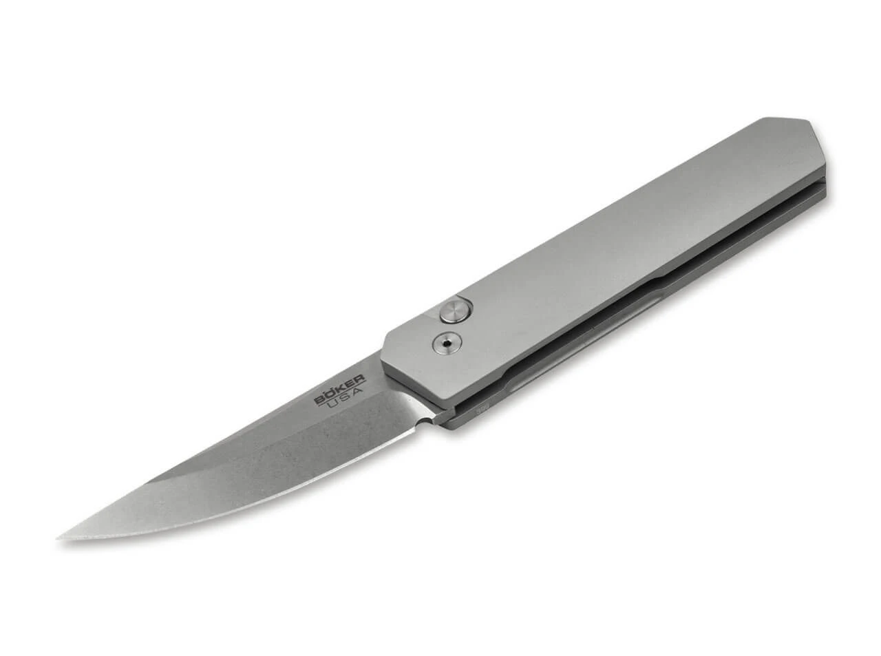 Boker Plus Kwaiken Compact Automatic Button Lock Gray Aluminum 154CM Blade 01BO253