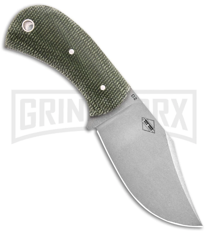The Boker Plus Mad Man is a fixed blade knife with a handy three-finger green Micarta handle. It is durable, made of D2 steel, and comes with a Kydex sheath for easy tip-down carry.