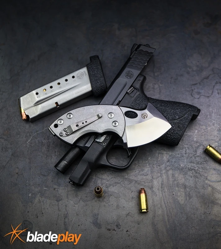 The handle is comprised of a textured black G10 front, titanium back and titanium spacer. Geoff wanted to keep the handles simple, allowing the end user to customize the knife if they wish. A nod to his roots.
